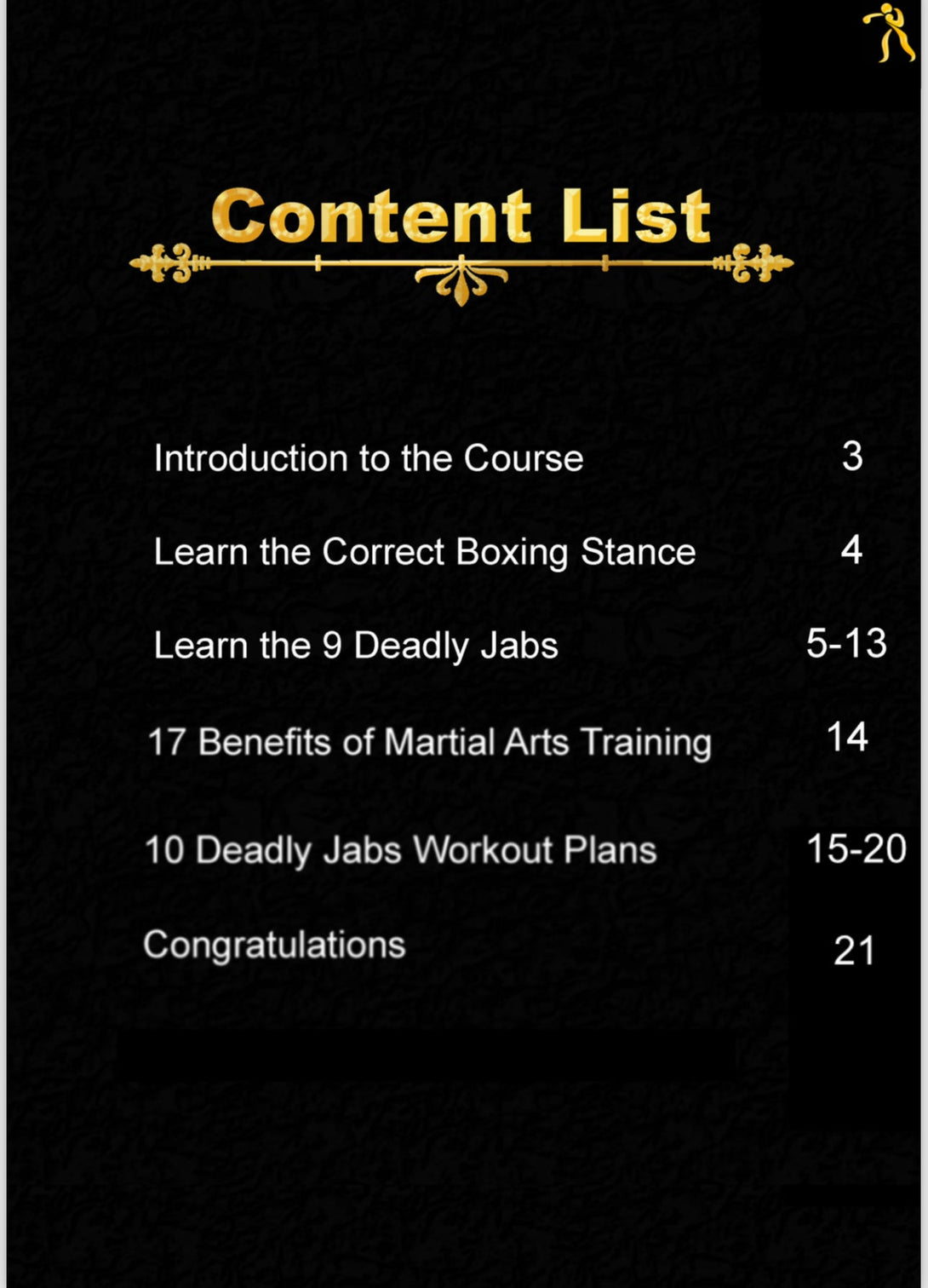 Whether you are a beginner looking to improve your jab or an experienced fighter looking to expand your skill set, this course will offer you important knowledge and training exercises to help you reach your full potential.